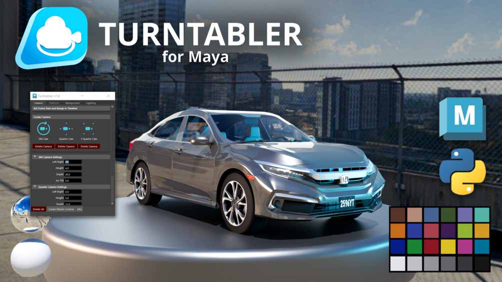 Turntabler is a Maya Python script that allows you to create different types of turntables faster and more efficiently.